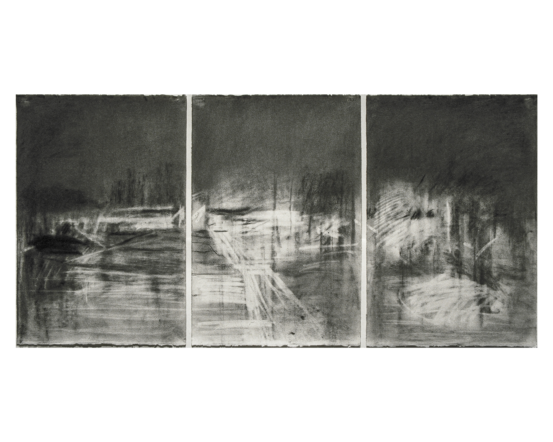 Drawing Installation - Charcoal on wash paper with polished aluminium - Sagacho Bis, Tokyo 1997